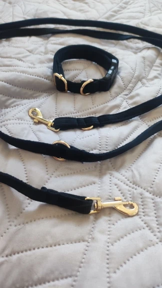- Features a custom engraved nameplate, breakaway quick-release buckle, and matching padded leash for safety and style.