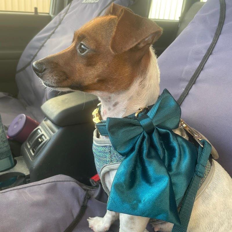 Designed for special moments, this Blue Green Satin Wedding Set brings luxury craftsmanship and timeless elegance to your pup’s big day. Handcrafted from premium satin, soft cotton, and durable metal hardware, this set elevates your dog’s look with refined beauty and long-lasting comfort.
