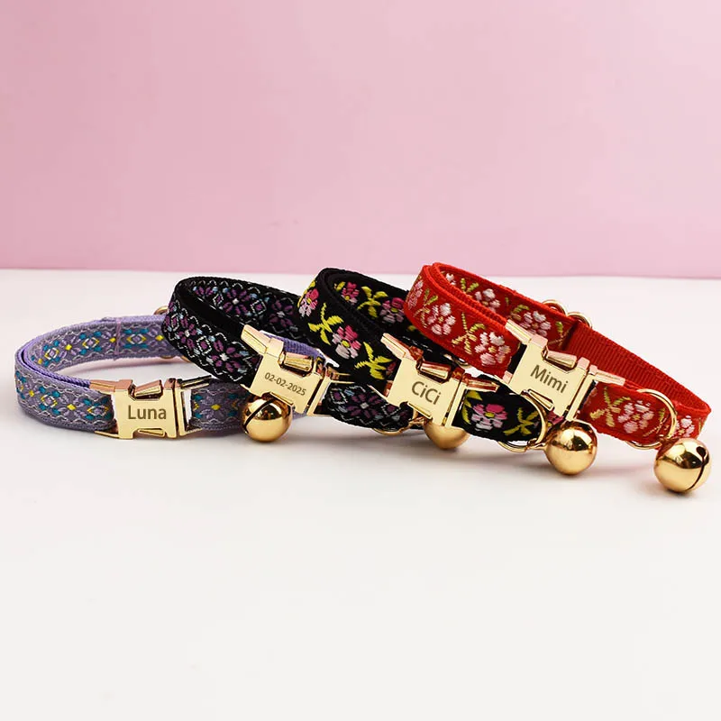 Cute Cat Collar, Harness & Leash Set – Personalized Engraved Nameplate, Padded