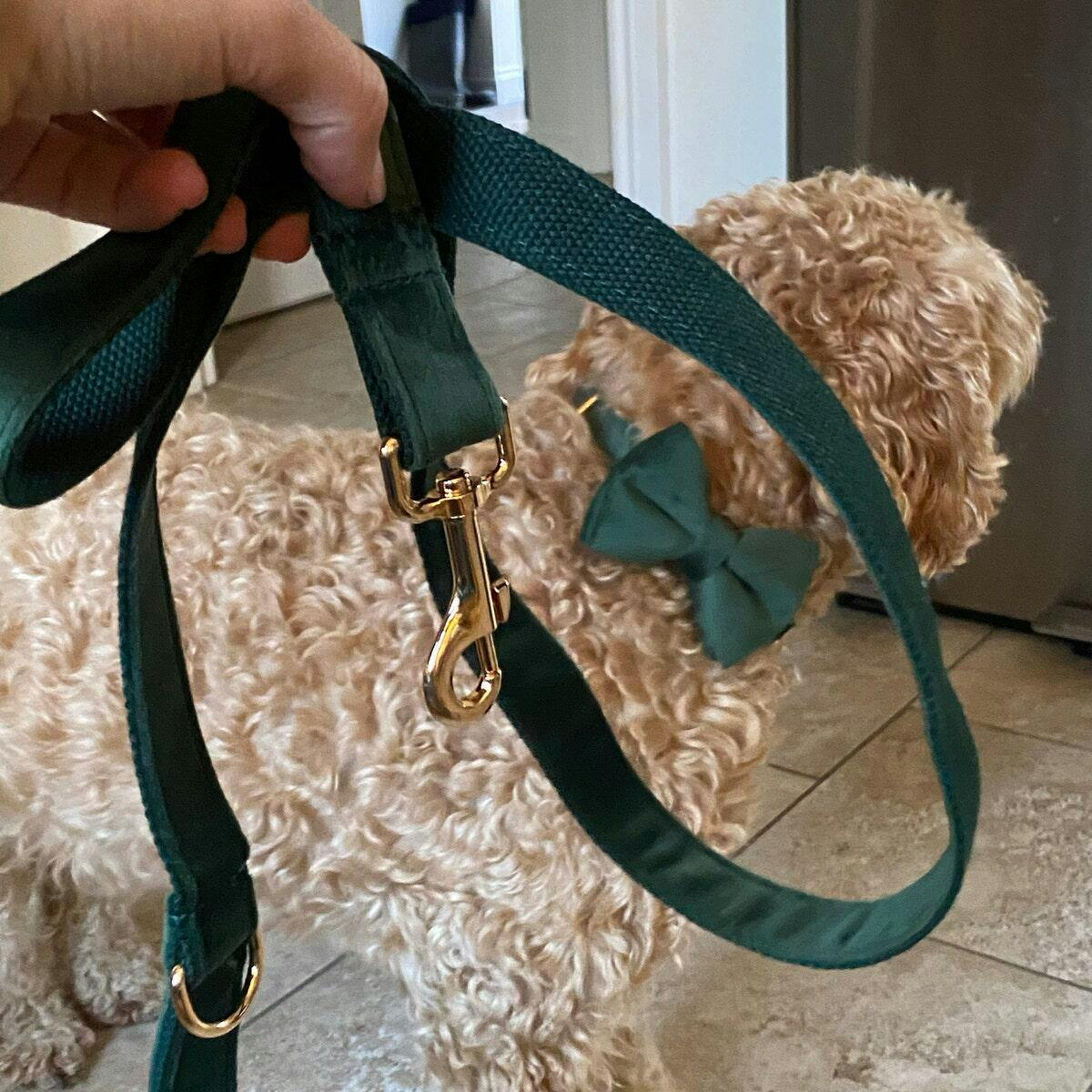 Green Velvet Personalized Dog Collar, Leash & Harness Set