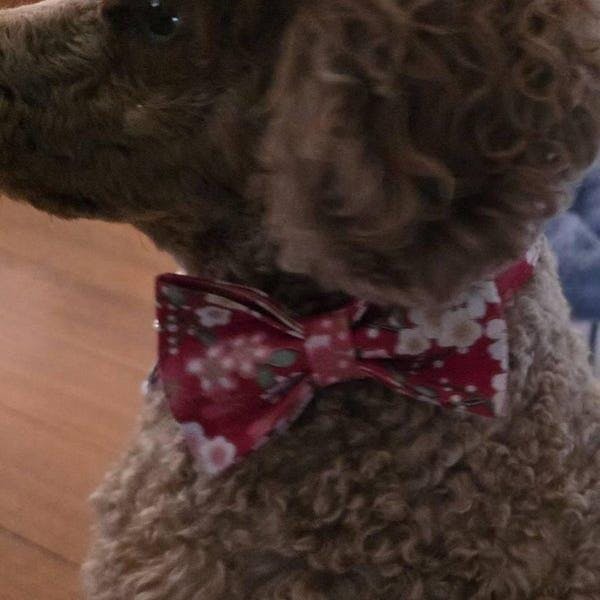 Customized Designer Red Soft Cotton Personalized Dog Collar Leashes Harness Bow Set Flowers
