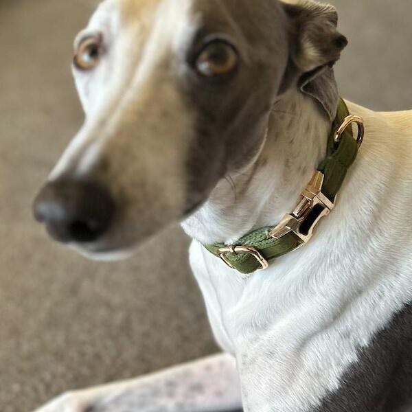 • Features a custom engraved nameplate, breakaway quick-release buckle, and matching padded leash for safety and style.