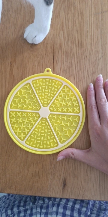 Devon Block Very cute design, ideal for giving my cats wet food. It has a suction cup on the back to prevent slipping.