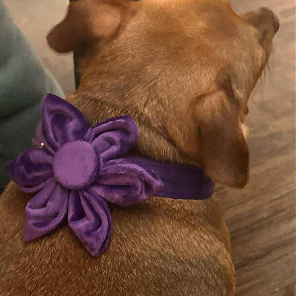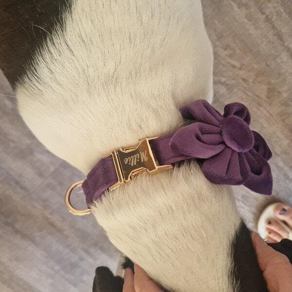 Purple Velvet Personalized Dog Collar, Leash & Harness Set
