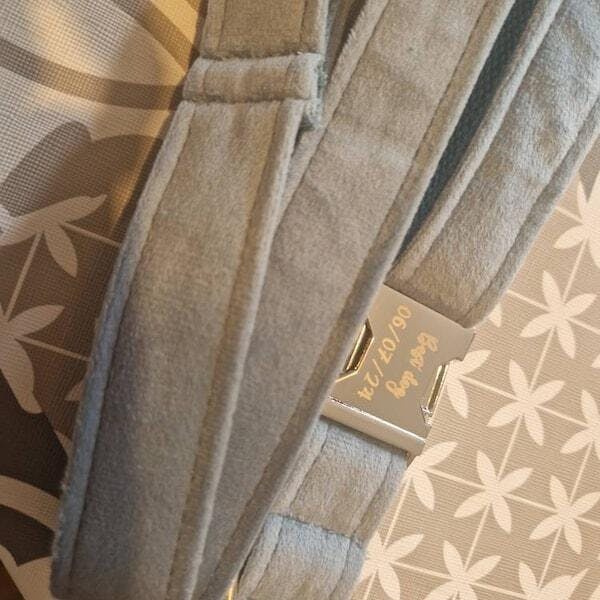 Light Blue Velve Personalized Dog Collar, Leash & Harness Set
