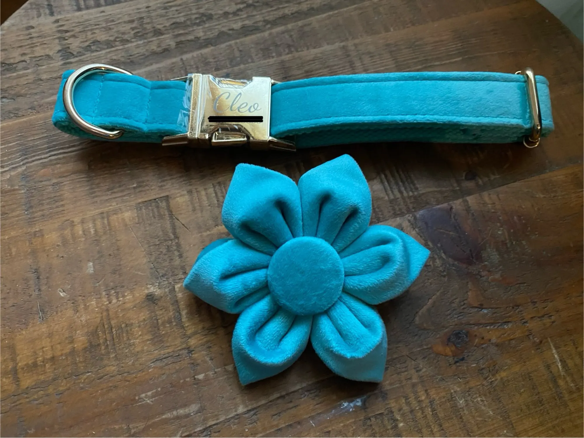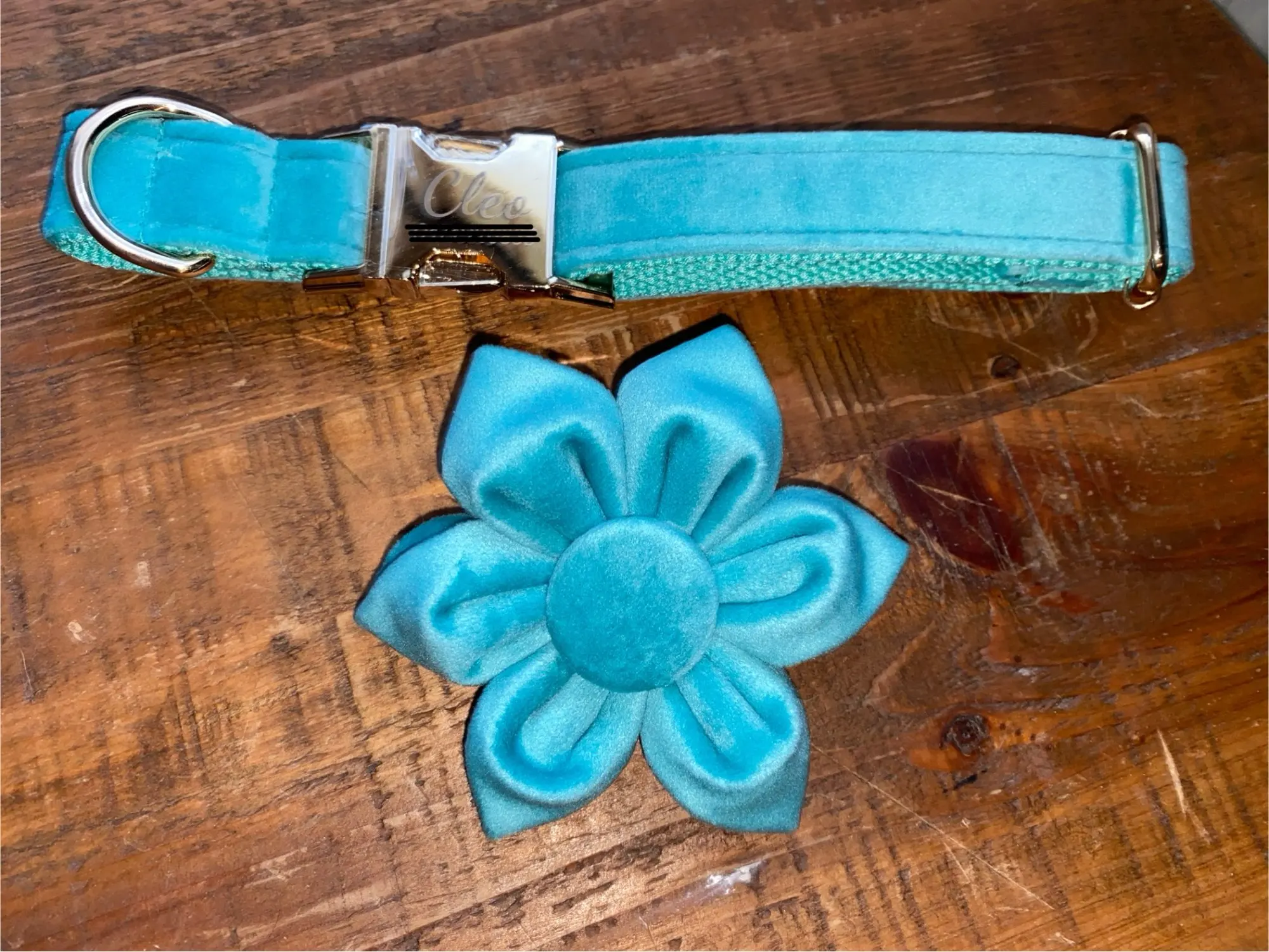 Mia Lovely shade of blue, suits the boy really well. Have bought from the store numerous times for cat and dog collars and they are all lovely, do wish there was an option for different hardware qualities as would happily pay more for a more durable buckle etc but still they are great collars.