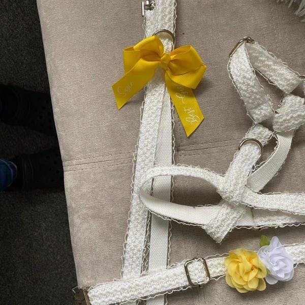 White Lace Personalized Dog Collar, Leash & Harness Set